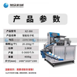 XZ-390智能包子机,全自动包子,一键联动调节智能记忆系统。由12把刀组成,可做多种馅料包子,面馅可调,生产效率高。自带水冷系统,冷却效果明显,方便客户大批量制作产品。