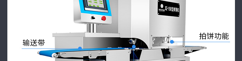 XZ-150型擀薄机,为一种对面团可进行气动拍饼或仿手工擀薄的设备,可根据用户需要对面团的直径、厚度进行调整并将面团按照设定的规格进行搓圆摔擀薄。