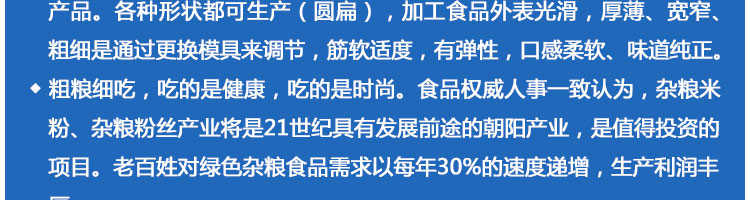 SZ-350多功能米粉机,生产多样性可生产米粉、米线、粉丝、粉条、、年糕、玉米面条、各种杂粮粉丝、各种面条、杂粮面条、彩色面条以及以红薯、玉米、大豆、蚕豆等制成淀粉为原料的等多种食品而且每种食品厚薄、粗细等规格可根据需要任意调整。