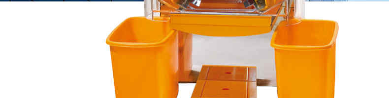 2000E-4自动榨橙汁机,该机设计合理,采取挤压式,鲜橙经消毒、漂洗后,直接进入机器 ,自动剥皮、榨汁、过滤,现榨现饮,不仅适用于小饮店、水果店、饭店、宾馆、酒吧、卡厅、茶秀、咖啡屋等,也适用于成功人士的家庭使用。