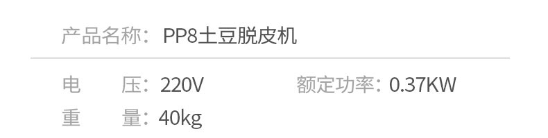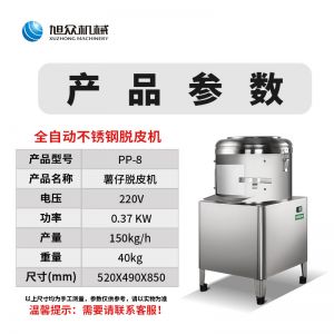 PP8、PP15薯仔脱皮机,土豆脱皮机,是采用离心旋转,摩擦脱皮技术,工作效率高,主要用于土豆,芋头表面脱皮。适用于肯德基店、酒店、食堂等。